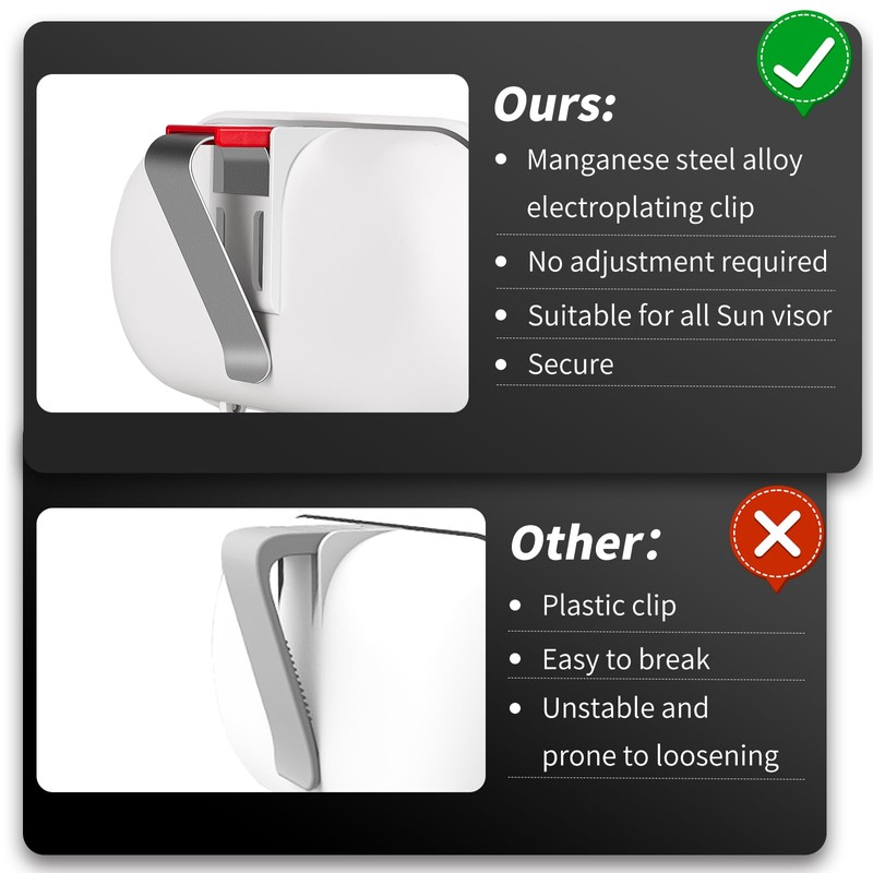 - 【ABS material】Visor sunglasses holder clip made of ABS material, durable, waterproof, and dirt resistant.