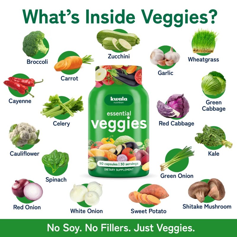 Kwala Nutrition Fruit and Veggies Supplement - 180 Capsules Total - Non GMO, ...