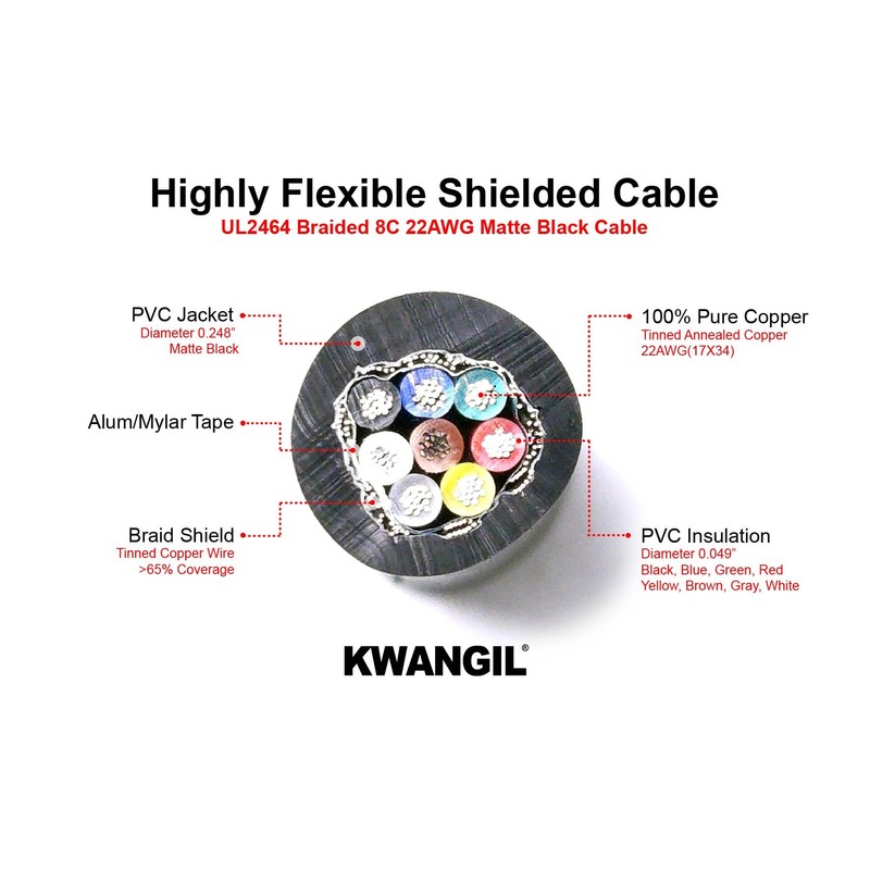 KWANGIL 8C 22AWG AMSB Shielded Cable Wire (UL2464) - Highly Flexible Str TC, ...