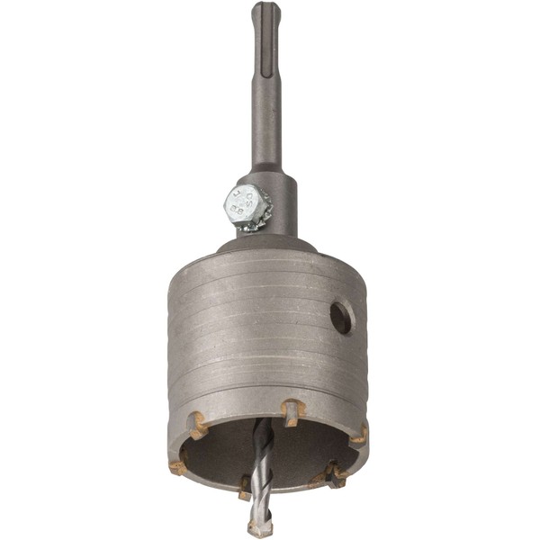 - Hollow drill bit, carbide-tipped, with interchangeable SDS Plus shank and pilot drill diameter 8 mm, impact drilling, specially hardened, specially soldered, heat-resistant carbide plates, for use in masonry, natural stone, artificial stone, concrete, marble and brick, for setting electrical flush-mounted boxes and pipe openings