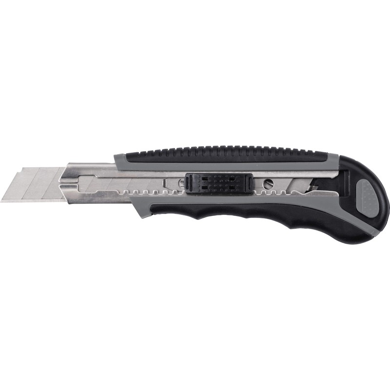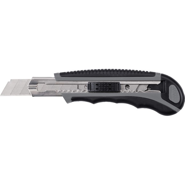 - With 6 pieces 18 mm snap-off blades, 5 replacement snap-off blades in the locked blade magazine, release by simply pressing the locking button, blade guide made of robust stainless steel, auto loading function, easy removal of the used blade and automatic reloading from the blade magazine, autolock function: automatic locking for safe working, 2-component plastic housing with non-slip grip surface