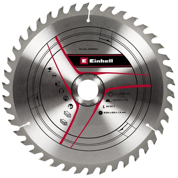 kwb by Einhell HM Saw Blade (Diameter 250 x 30 mm, 42 Teeth, Suitable for Various Einhell Table saws, Pull Cap mitre saws and mitre saws)
