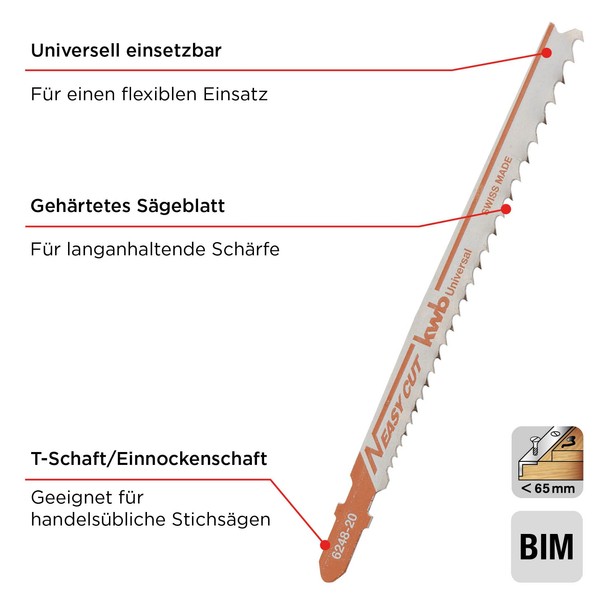 • Universal use: thanks to the composition of the kwb jigsaw blades, the jigsaw blade set can be used universally in wood materials, metal and plastics.