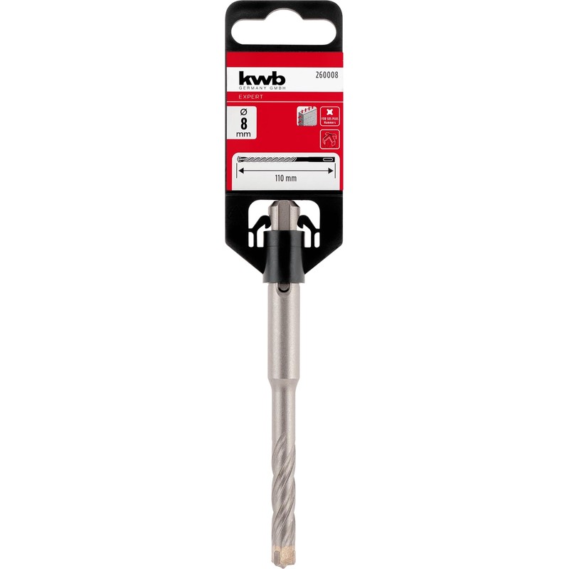 kwb HB4X SDS Plus Hammer Drill Bit, 110 mm, Diameter 8 mm (Hungsten Carbide Plate, Four Cutting Edges, Centring Point, Quadruple Plus Spiral, Tool Steel, SDS Plus)