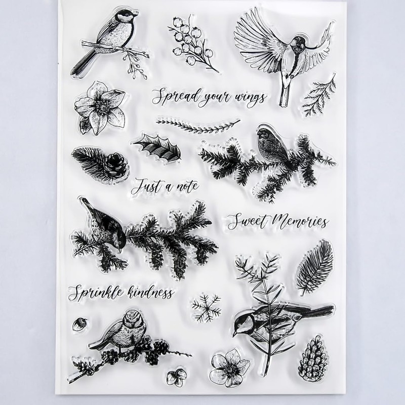 Kwellam Merry Christmas Snowflake Bird Flowers Clear Stamps for Card Making Decoration and DIY Scrapbooking 3090605