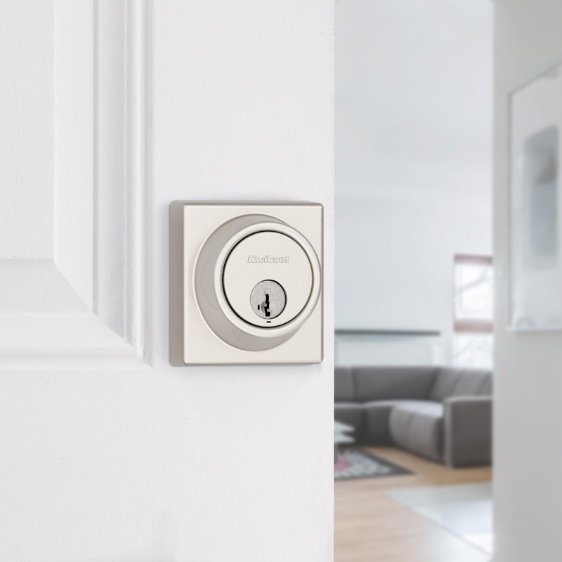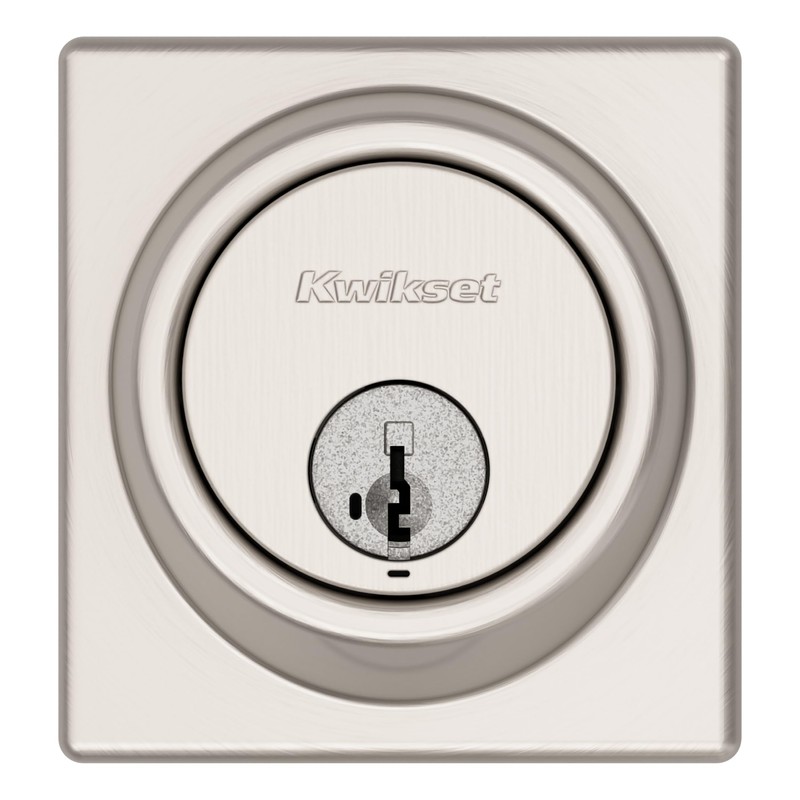 Kwikset 817 Deadbolt Lock, Satin Nickel Square Exterior Keyed Front Entry Door, Pick Resistant SmartKey Rekey Security, Single Cylinder Dead Bolt, with Microban Protection