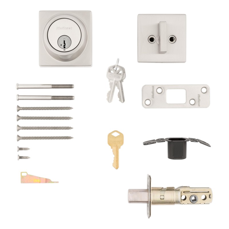 - BOX INCLUDES: Exterior Keyed Deadbolt, Interior Turn Piece, Adjustable Latch, 2 Keys, Screws, Strike Plate, SmartKey Tool, Installation Hardware, Install Guide