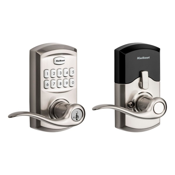 Kwikset SmartCode 917 Keypad Keyless Entry Traditional Residential Electronic Lever Deadbolt Alternative with Tustin Door Handle and SmartKey Security, Satin Nickel