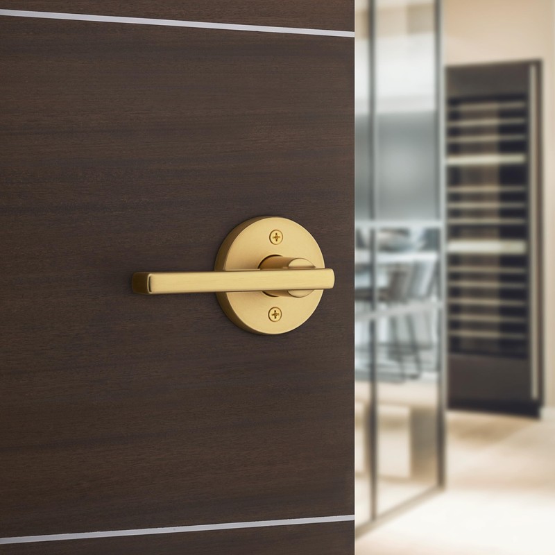 Kwikset Halifax Interior Passage Door Handle, Lever for Closet and Hallway Doors, Reversible Non-Locking Handle Lever, Satin Brass, with Microban Protection