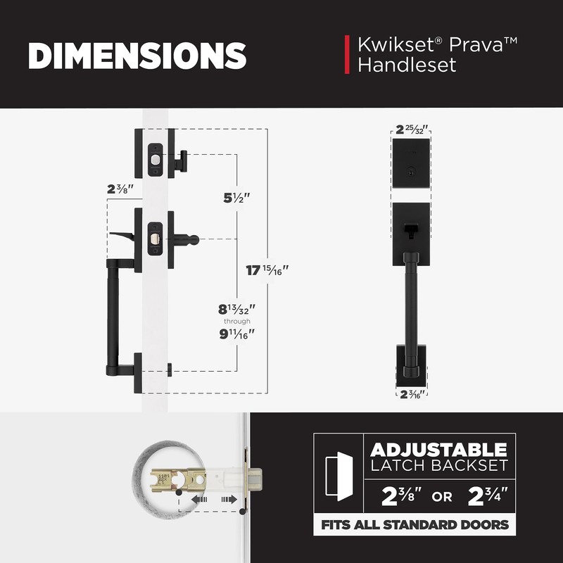 - FITS STANDARD DOORS: Fits standard size doors 1-3/8" to 1-3/4" thick, adjustable latch backset from 2-3/8" to 2-3/4" with just a twist during installation