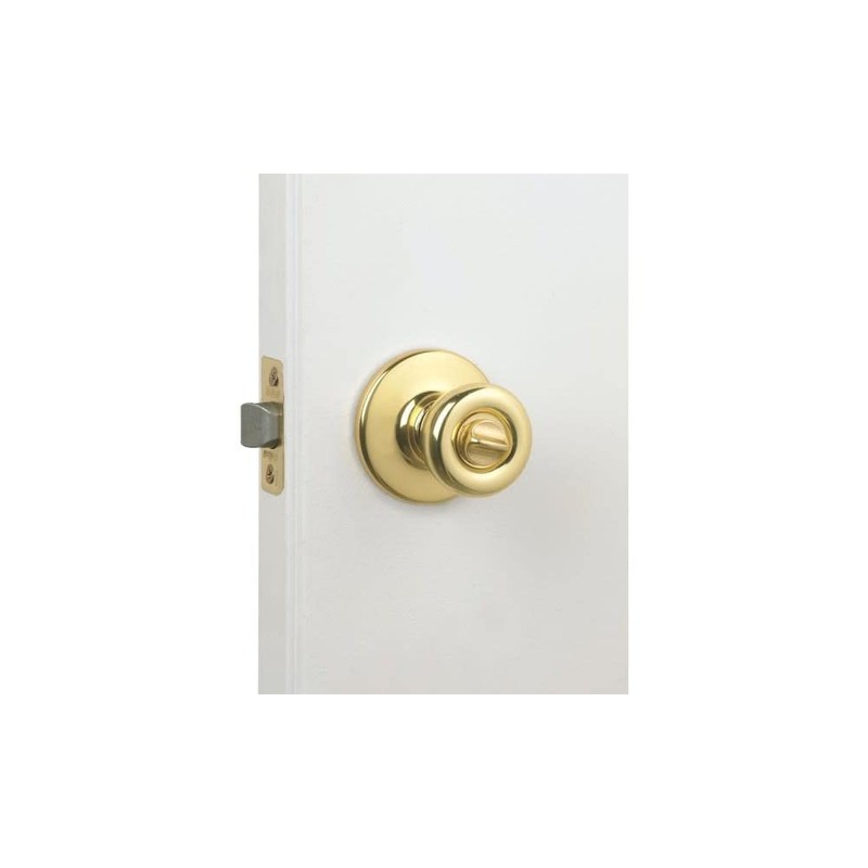 As the industry leader, Kwikset has provided trusted security for over 60 years and has become synonymous with security, peace of mind, style and innovation. The classic design of tylo is at home in any décor. Its style lends a graceful finish to any door. This privacy knob is best used in interior bed and bath applications where privacy is required. Both knobs are locked or unlocked by turn piece inside. The outside knob can be unlocked by an emergency key. The polished brass finish adds to the traditional look and feel of the product and makes a classic statement.