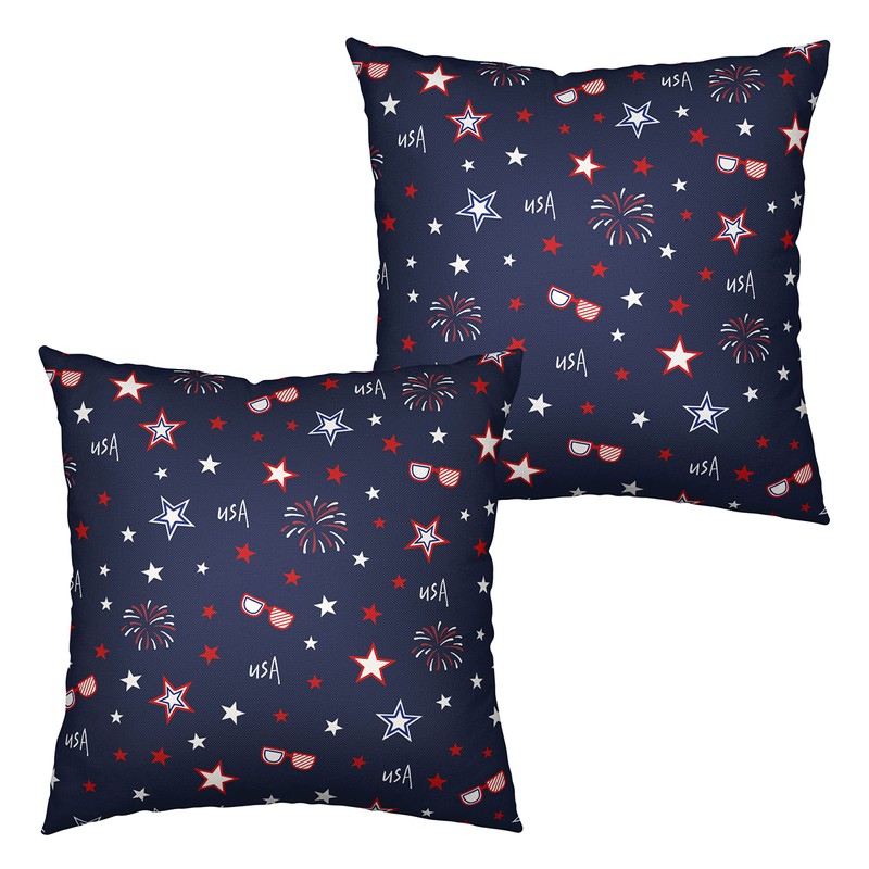 - ★【PACKAGE INCLUDES】 2 pack of USA stars fireworks throw pillow covers 18 x 18. The Independence Day decorative pillow cover with invisible zippers. Both sides with same stars fireworks printings as showed in picture. And NO pillow stuffing.