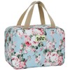 KWLET Toiletry Bag for Women Cosmetic Bag Large Toiletry Bag Navy Rose Toiletry Kit Leakproof Toiletry Bag for Girls Make Up Bag Floral Cosmetic Case (11.8L×5.1W×7.8H, Light Blue Rose)