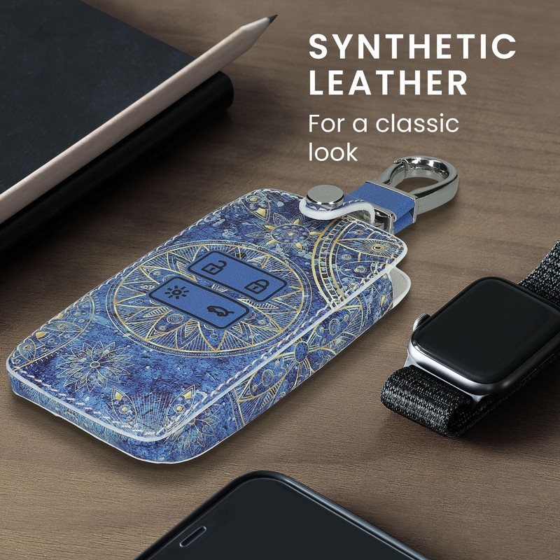 - Elegant leather look: the car key case in mandala design in yellow dark blue is made of robust faux leather and protects your ignition key from dirt.