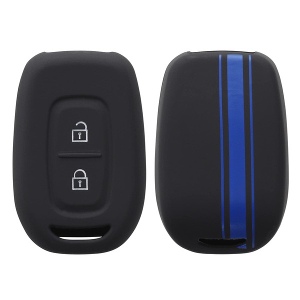 kwmobile Car Key Case Compatible with Renault Dacia 2-Button Radio Car Key Case - Key Cover Rally Stripes Sidelines Blue Black