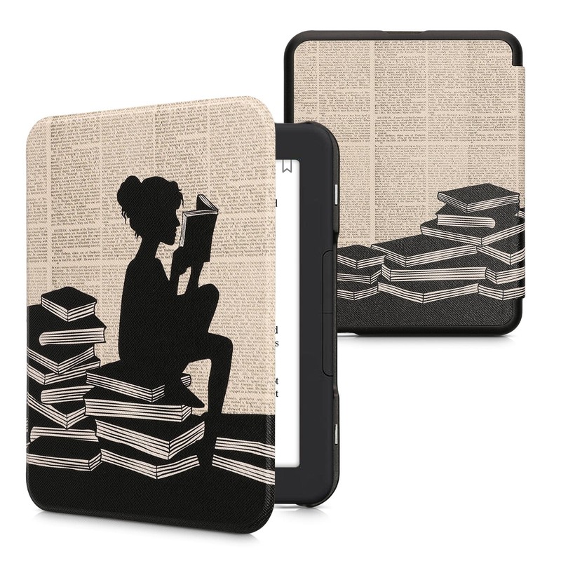 kwmobile Case Compatible with Barnes & Noble Nook Glowlight 4 / 4e Case - eReader Cover - Girl and Books Black/Beige
