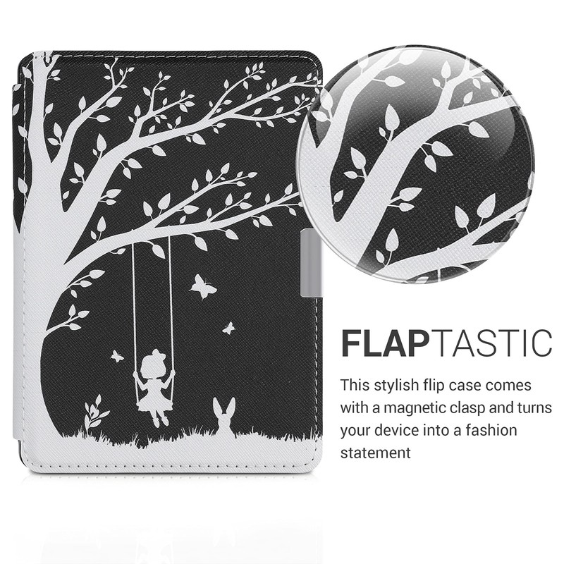 kwmobile Case Compatible with Kobo Aura Edition 2 Case - eReader Cover - Girl Tree Swing White/Black