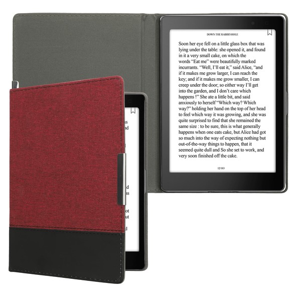 kwmobile Case Compatible with Kobo Aura ONE - PU Leather and Canvas e-Reader Cover - Dark Red/Black