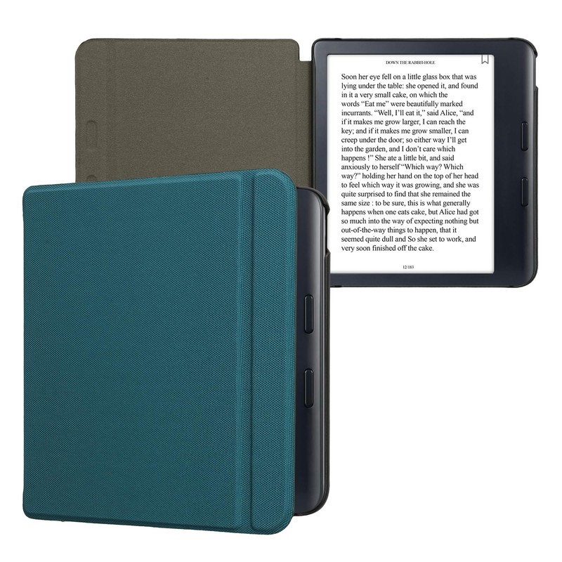 kwmobile Case Compatible with Kobo Libra Colour - Nylon Protective e-Reader Cover Folio Book Style Case - Petrol