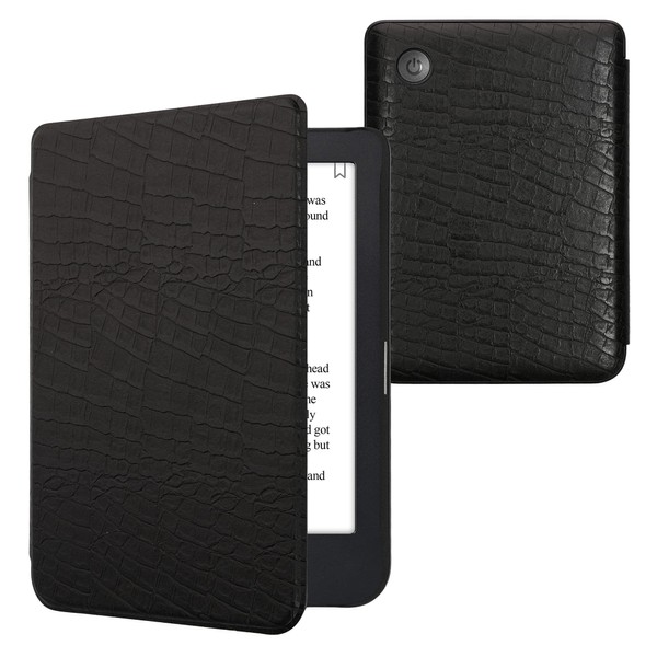 kwmobile Flip Case Compatible with Kobo Clara 2E / Tolino Shine 4 Case - eReader Case - Crocodile Leather Pattern Black