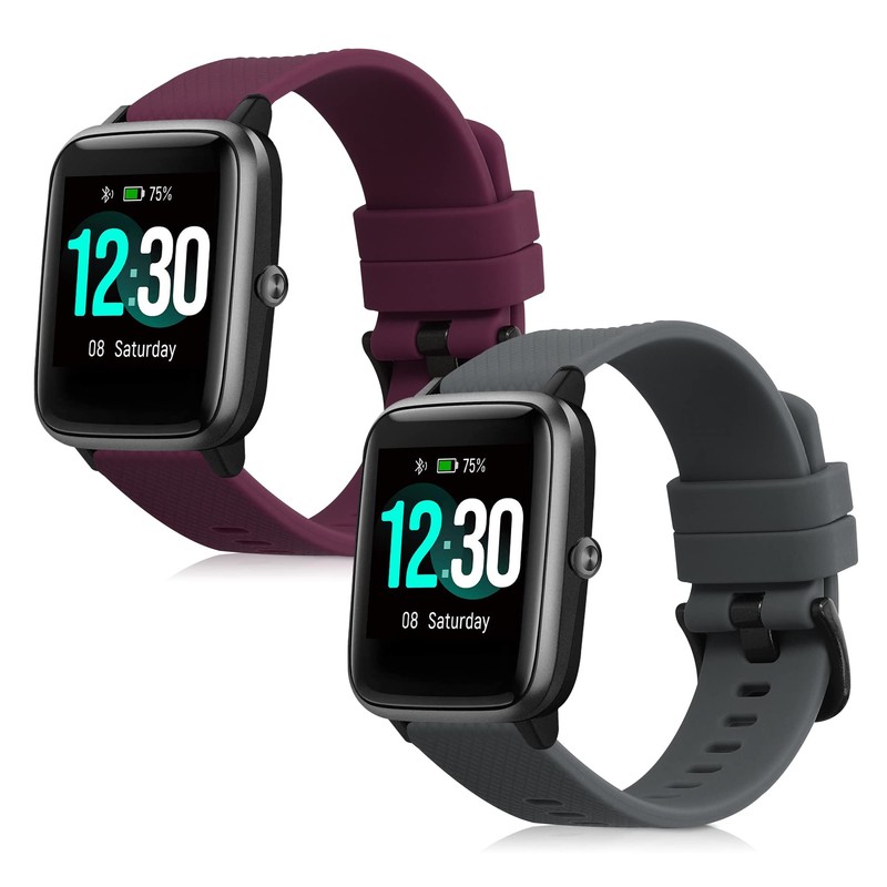 kwmobile Straps Compatible with Willful Fitnesstracker/Smartwatch Straps - 2x Replacement Silicone Watch Bands - Grey/Violet