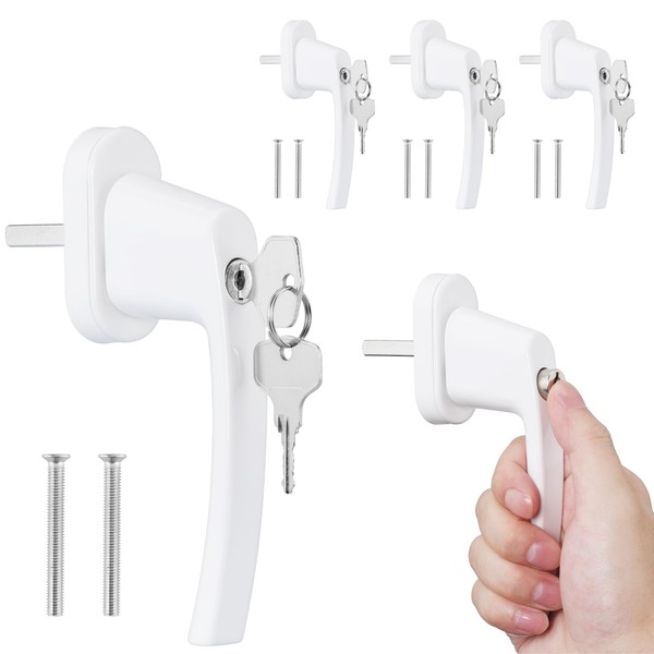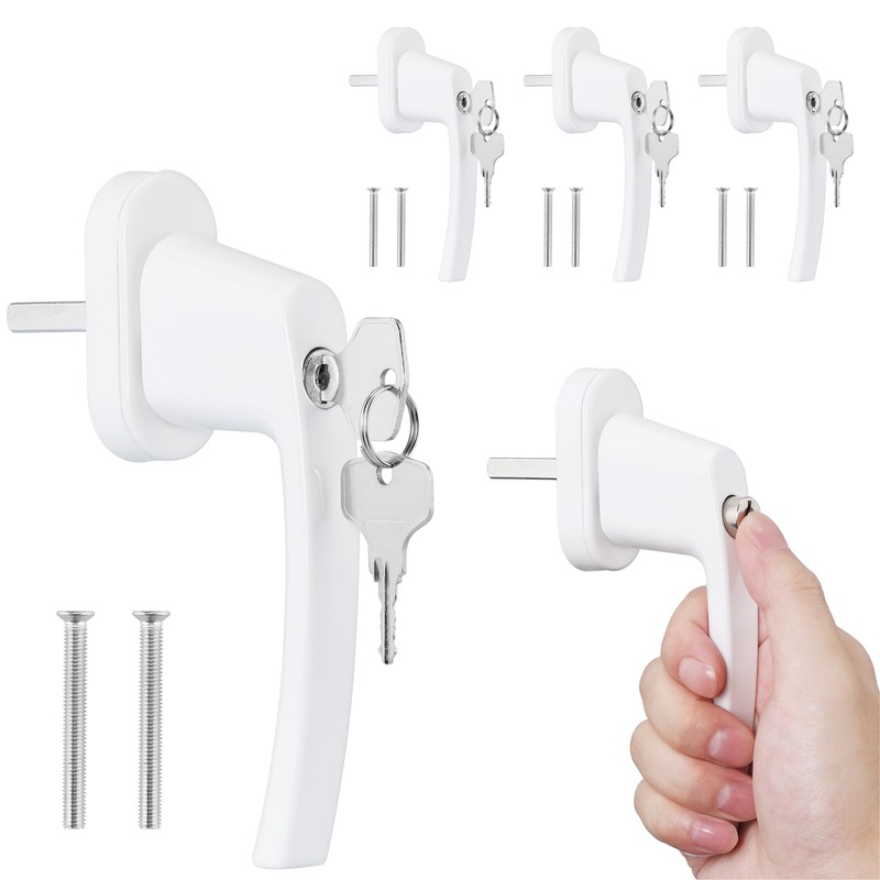 kwmobile Window Handle Lockable - Window Lock with Button and Key - Window Lock - Window Child Lock - Safety Window Handle - Pack of 4 - White