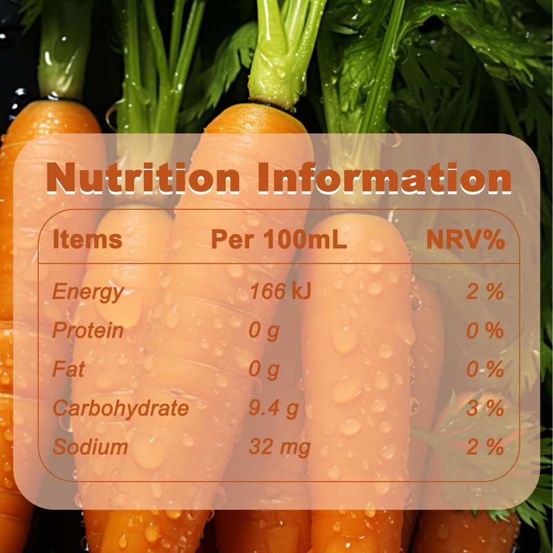 - 100% Cold-Pressed Fresh Carrot Juice: Made from organic carrots, no concentrates, preservatives, or artificial additives.