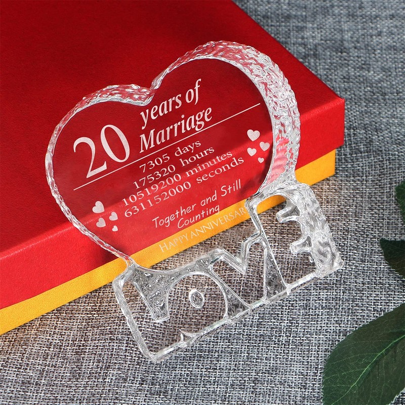 - ETERNAL LOVE - 20 years of Marriage 7305 days , Together and Still Counting Happy Anniversary, The image is laser engraved inside the crystal and will not wear out, just like the love between you and your wife or husband.