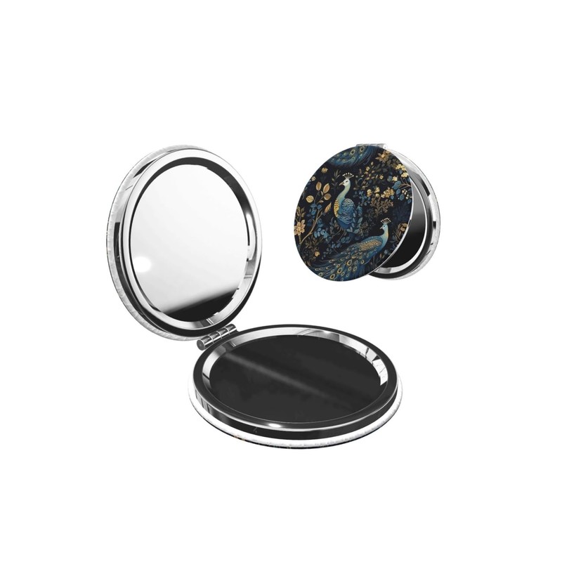 KWSAAHU Double-Sided Pocket Compact Mini Makeup Mirrors 1x, 2X Magnifying Mirror Portable Foldable Round Small Purse Mirror Suitable Daily Travel Party for Woman Man - Peacock