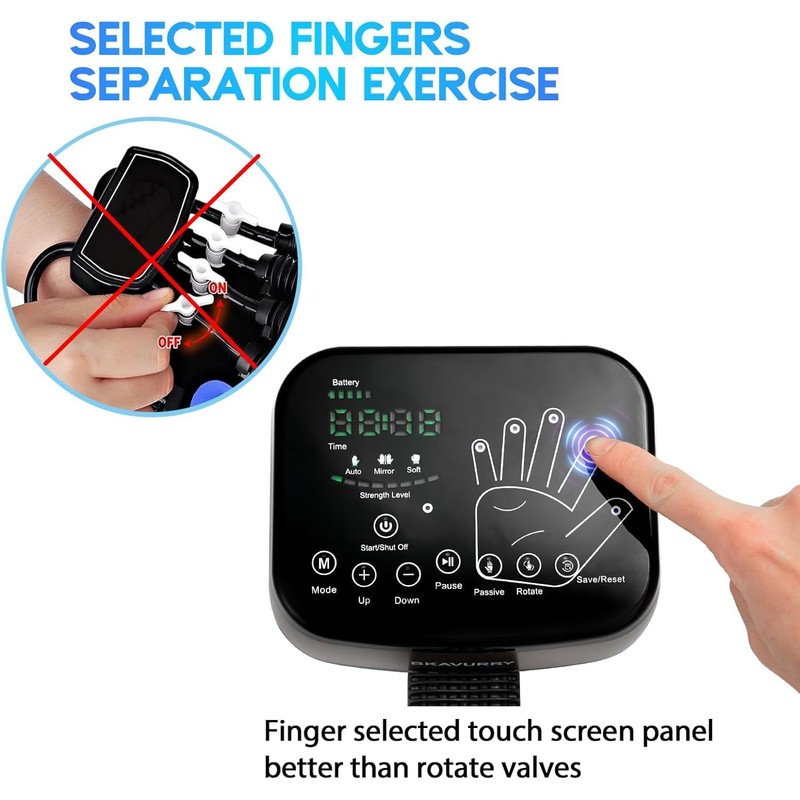 - 【Upgrade Touchscreen to Select Training Fingers】--Say goodbye to manually adjusting mechanical valves,users can now effortlessly control single and multiple finger exercises, allowing for targeted training of weak or spastic fingers.