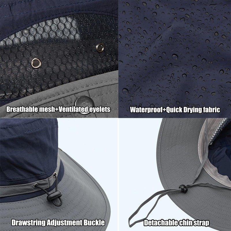 - Adjustable Windproof Chin Strap --- Our hat features a detachable and adjustable windproof chin strap that keeping the hat stays securely in place during windy conditions, allowing you to enjoy outdoor adventures or activities such as fishing, hunting, camping, running, gardening, and beach.