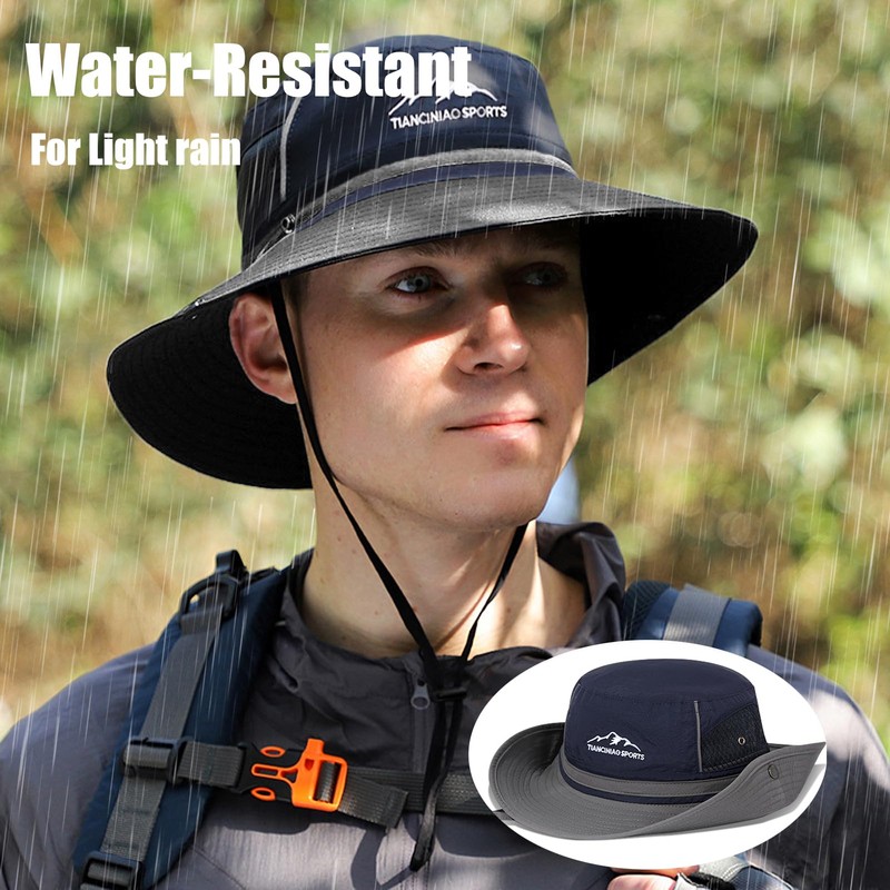 - Sun Protection & Waterproof Outdoor Hat --- Wide Brim 3.35-3.54inch. UPF 50+ excellent sun protection. Keeps the sun from your face and neck. Made of waterproof fabric, can be used in light rain. Suitable for outdoor activities such as hiking, cycling, running, fishing, beach, gardening, traveling, camping, walking, etc. Suitable for all seasons. However, please note that while it can withstand light rain, it is not intended for heavy downpours or prolonged exposure to moisture.