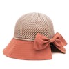 - A Bucket Hat and A Sun Hat -- The top part of the head of this sun hat is made of mesh material to reduce sweltering heat and keep cool. A part of the back of the hat is left to put on the ponytail. The bow decoration adds elegance to your look