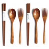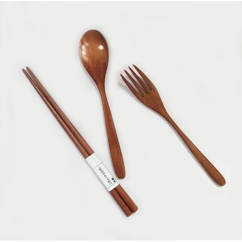 - ✔ Wooden Spoon Chopstick Fork Set: Wooden cutlery set, coated with natural lacquer surface, safe and secure. The warmth of natural wood cutlery will fit in your hand over time and add a glossy texture
