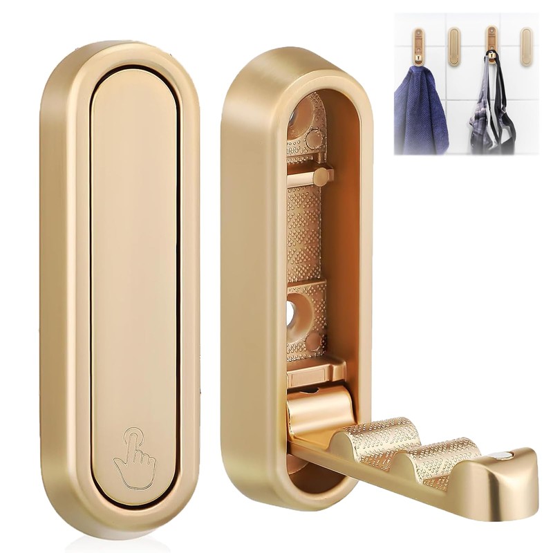 - 【Easy Installation】Simply mount with included screws (hardware included),fold down when needed - no tools required for operation.Gold hooks smooth edges protect your belongings.