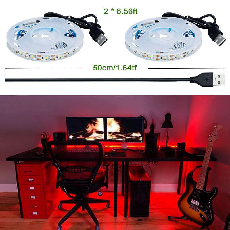 KXZM USB Red 620-625nm LED Strip Light 5V USB Powered 13.12ft/4M 240LEDs Flexible SMD2835 High Brightness No-Waterproof IP20 LED Tape Lights(2pcs x 6.6ft)