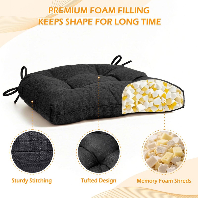 - Revive Your Comfort: The kitchen chair cushions set of 4 are vacuum packed, but don't worry, the memory foam inside has excellent resilience. Please take patience to rub or tap it and wait for 1-2 days, then you will get 4 thick and soft cushions.