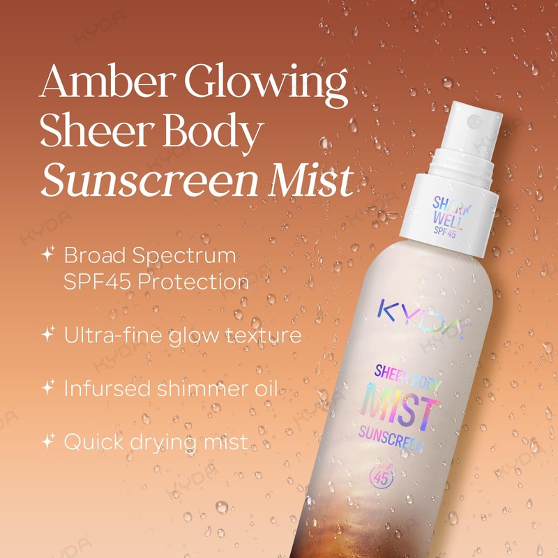 - KYDA GLOWY BODY SUNSCREEN KIT- The sunscreen set contains body sunscreen spray and body glow oil. This ultra-fine mist has a natural glow and is applied for sheer and seamless absorption. No aerosol, so after spraying the skin will not appear "white cast". Our Sunscreen Body Oil adds ultra-fine shimmer mica to protect the skin from UV damage, while make your skin shine like never before, the lightweight refreshing texture that absorb quickly and do not feel greasy with skin-loved formula.