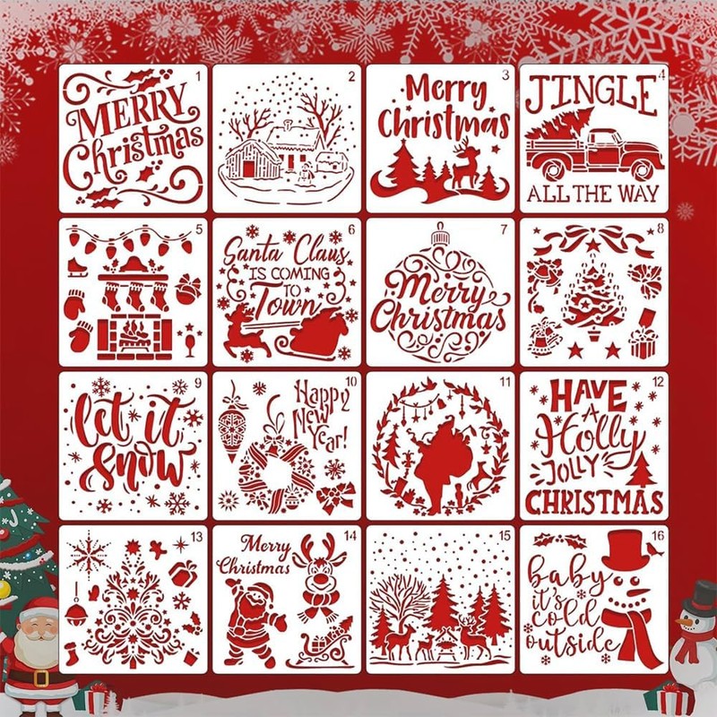Package includes:16 x Christmas painting stencils