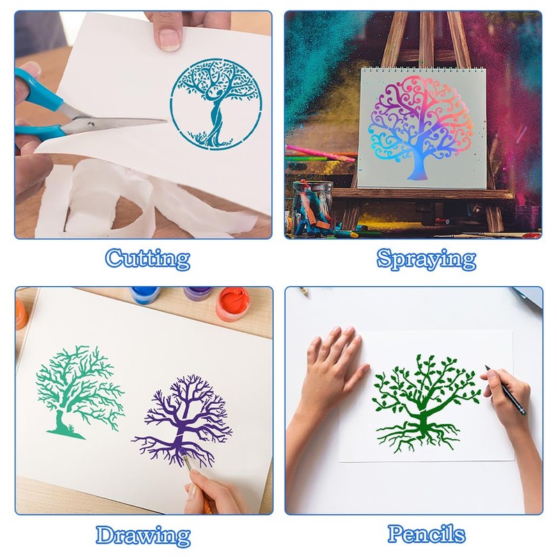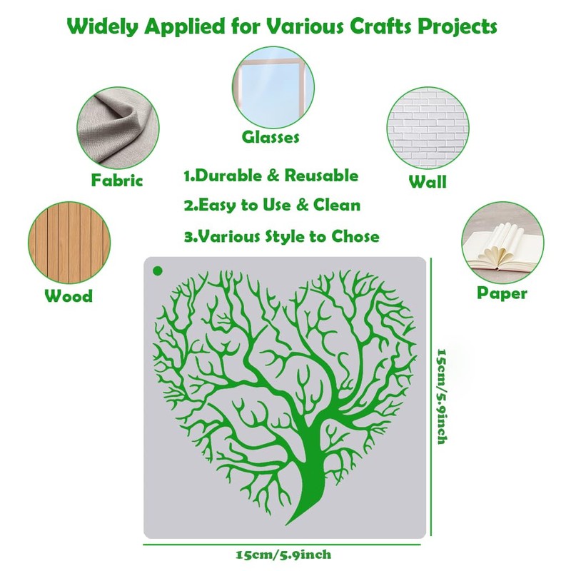 - Wide Application: Tree painting template can achieve your many situations and DIY projects crafts, suitable for making wood signs, home decor, decorating walls, wood-burning crafts, floors, cabinets, rock, canvas, art supplies, windows, tables, furniture, scrapbooks, greeting cards, bread, cakes, cookies, adding vitality and fun life.