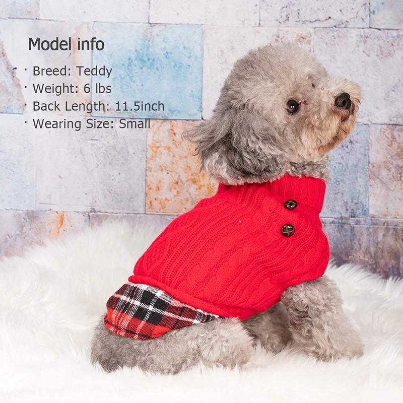 KYEESE Christmas Dog Sweaters for Small Dogs Turtleneck Red Dog Sweater Knitwear with Leash Hole Gingham Patchwork Pet Sweater for Fall Winter