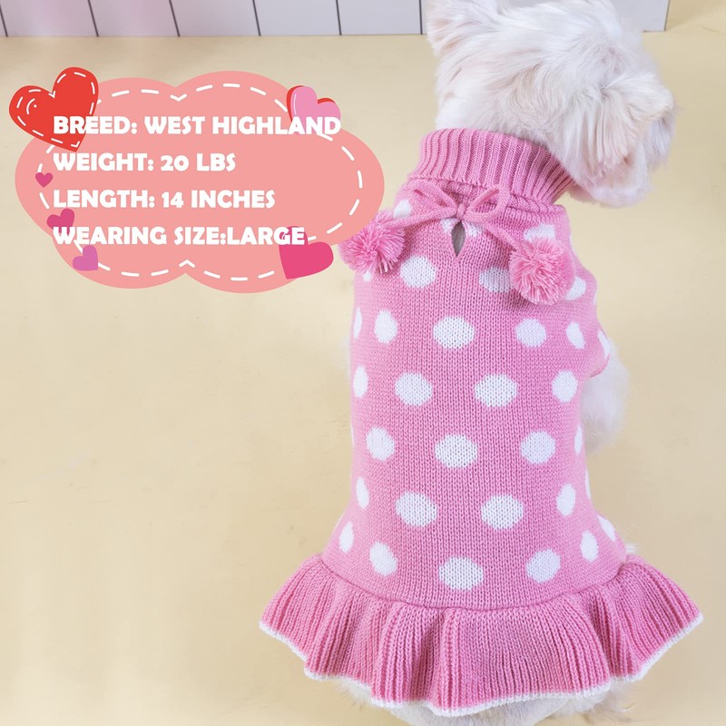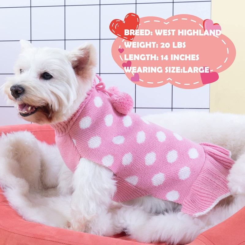 - 【Leading the Fashion】No one can say no to Polkadot ! KYEESE dog sweater dress, matching with pom pom ball on the back, more cute and elegant. Always ready for any occasions, daily activities, photoshooting.