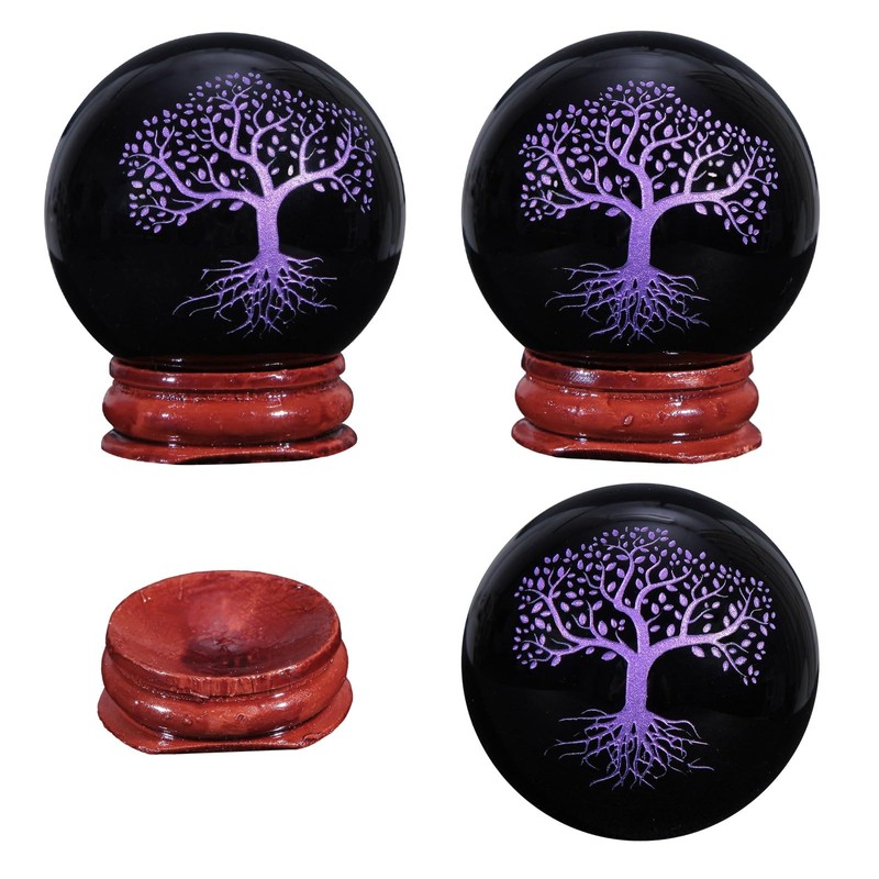 - Crystal Sphere with Tree of Life Pattern: The Tree of Life represents the interconnectedness of everything in the universe. In addition, it is a universal symbol of strength and growth. It is also known as the tree of happiness and the tree of knowledge, it also represents the birth, growth, protection and purification of life and is a good amulet.