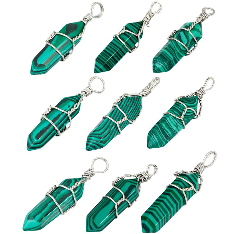 KYEYGWO Pack of 2 Crystal Points Stone Pendants Necklace for Women and Men, Malachite Crystals Pendants with Chain 19"