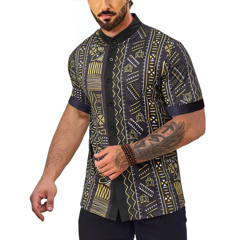 - Our mens african shirt are printed with boho and African Mexican Ethnic Tribal Hippie style patterns,which are classic but trendy,and designed with vibrant colors and assorted elements,This fashion shirt with button closure, henley shirt collar,large prints, bold and avant-garde design,will make you stand out in the crowd.