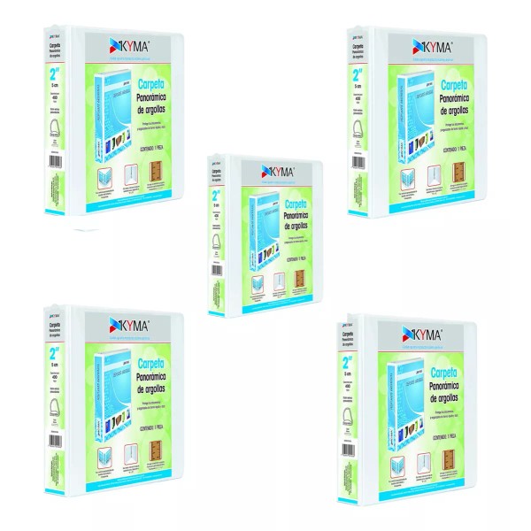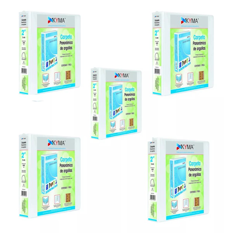 5 carpetas marca kyma de 2 pulgadas arillo en d soporta 400 hojas color blanco