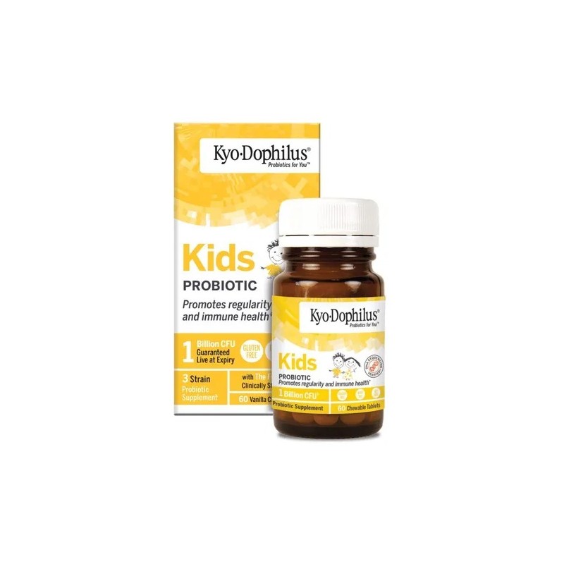 Kyolic Kid's Kyo-Dophilus.Descripción: Apoya función intestinal saludable.Suplemento probiótico.Medio billón de células vivas por tableta.Vegetariano.Los niños son muy especiales. Cambios en dieta o uso de antibióticos pueden alterar su sistema digestivo delicado.Suplementa su dieta con una cepa especial y segura de acidophilus cultivada para niños.El acidophilus en Kid's Kyo-Dophilus está procesado para mantener viabilidad a temperatura ambiente asegurando números adecuados para implantar en intestino y mantener flora saludable.No requiere refrigeración.Libre de conservadores, sodio, leche, levadura, gluten, colores artificiales.Aviso: No evaluado por FDA, no diagnostica ni cura enfermedades.