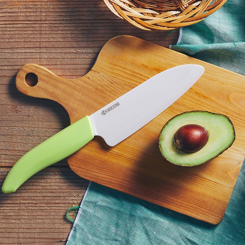Kyocera Revolution 2-Piece Ceramic Knife Set: Chef Knife For Your Cooking Needs, 5.5" Santoku and 4.5" Utility Knife, White Blades with Green Handles, White/Green