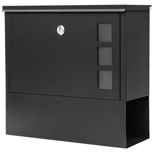 KYODOLED Locking Mailbox Wall Mount,Locked Mailboxes for Outside,Mail Box with Key Lock,Large Capacity Mailbox for Newspapers,14.3 x 4.1 x 11.8 Inch, Black