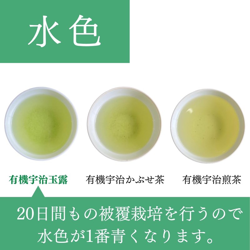 - High-grade Uji Tamashi: This product is a blend of Uji Tamashii products, Uji Midori and Goose tea leaves. This product has a refreshing feeling of wild herbs and a rich milk flavor. It preserves the taste of Uji Gyoku while maintaining the delicious taste of organic cultivation